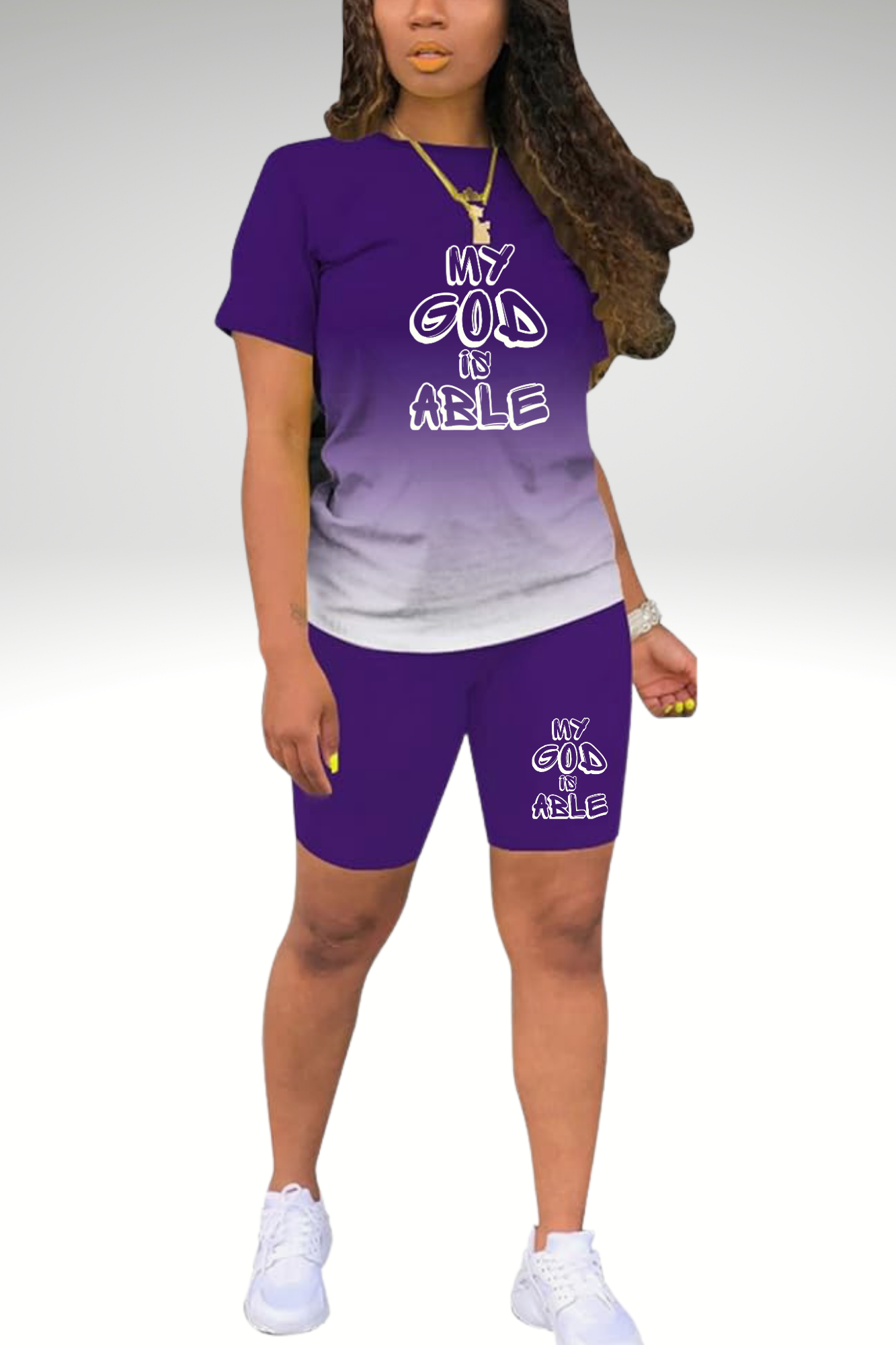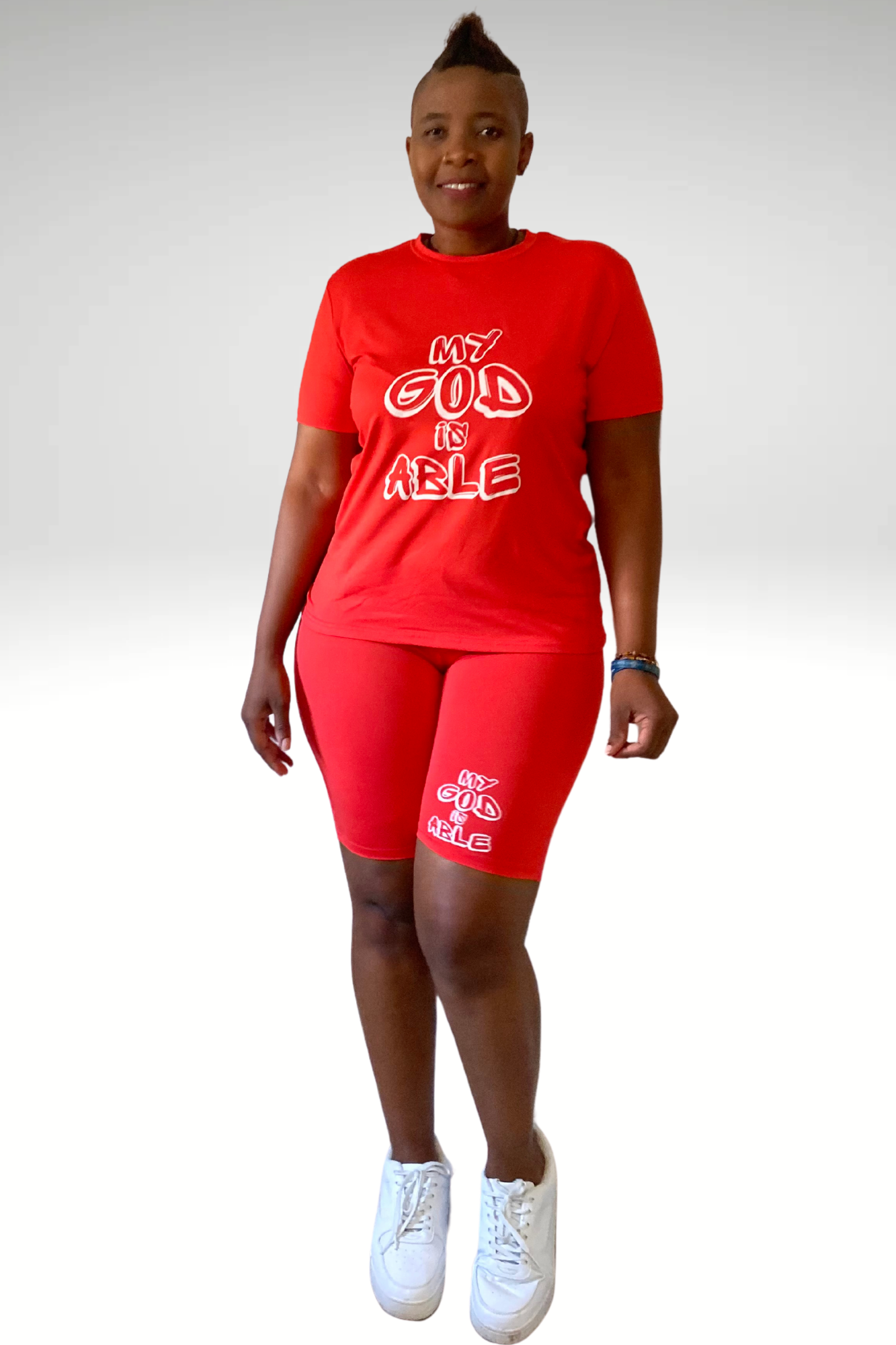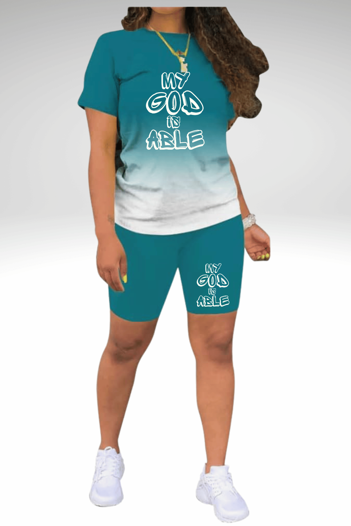 Step into the summer season with confidence and faith in the MY GOD IS ABLE Women's 2-Piece Christian T-Shirt and short Set. This Christian T-shirt set is designed for comfort, style, and a meaningful message that resonates with biblical teachings, perfect for any occasion from casual outings to relaxing at home.