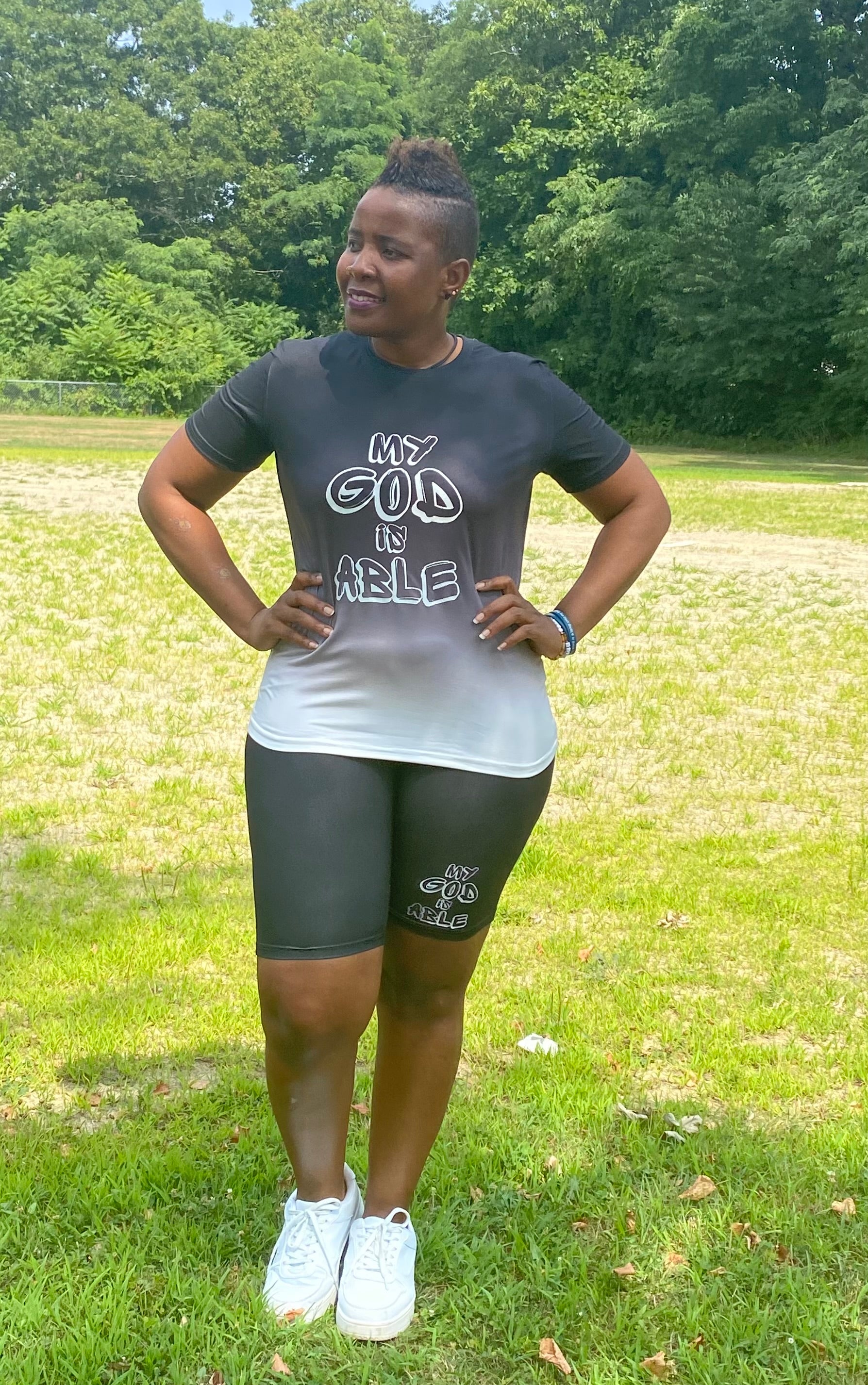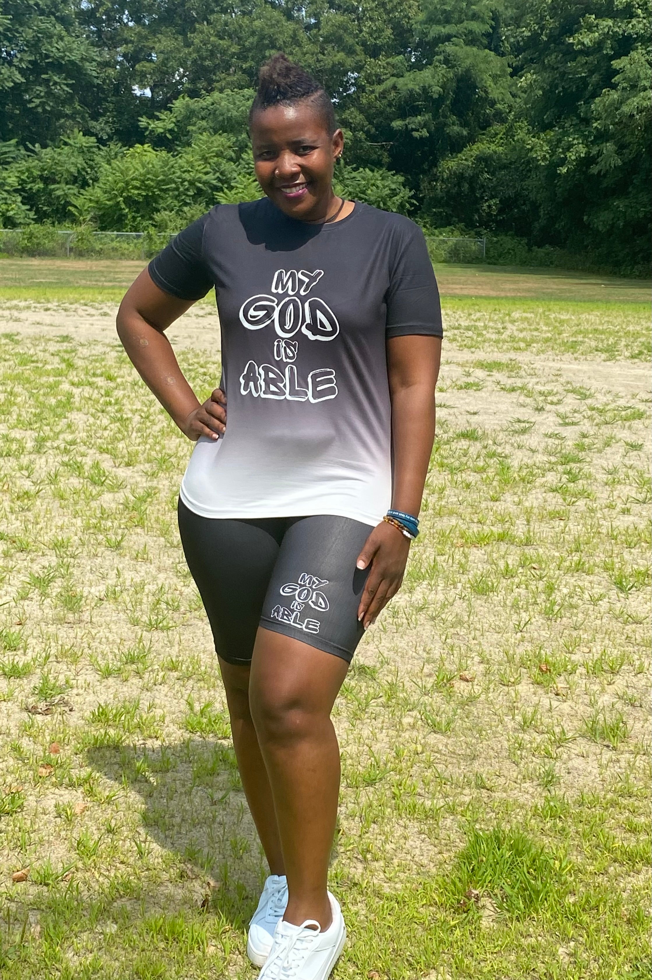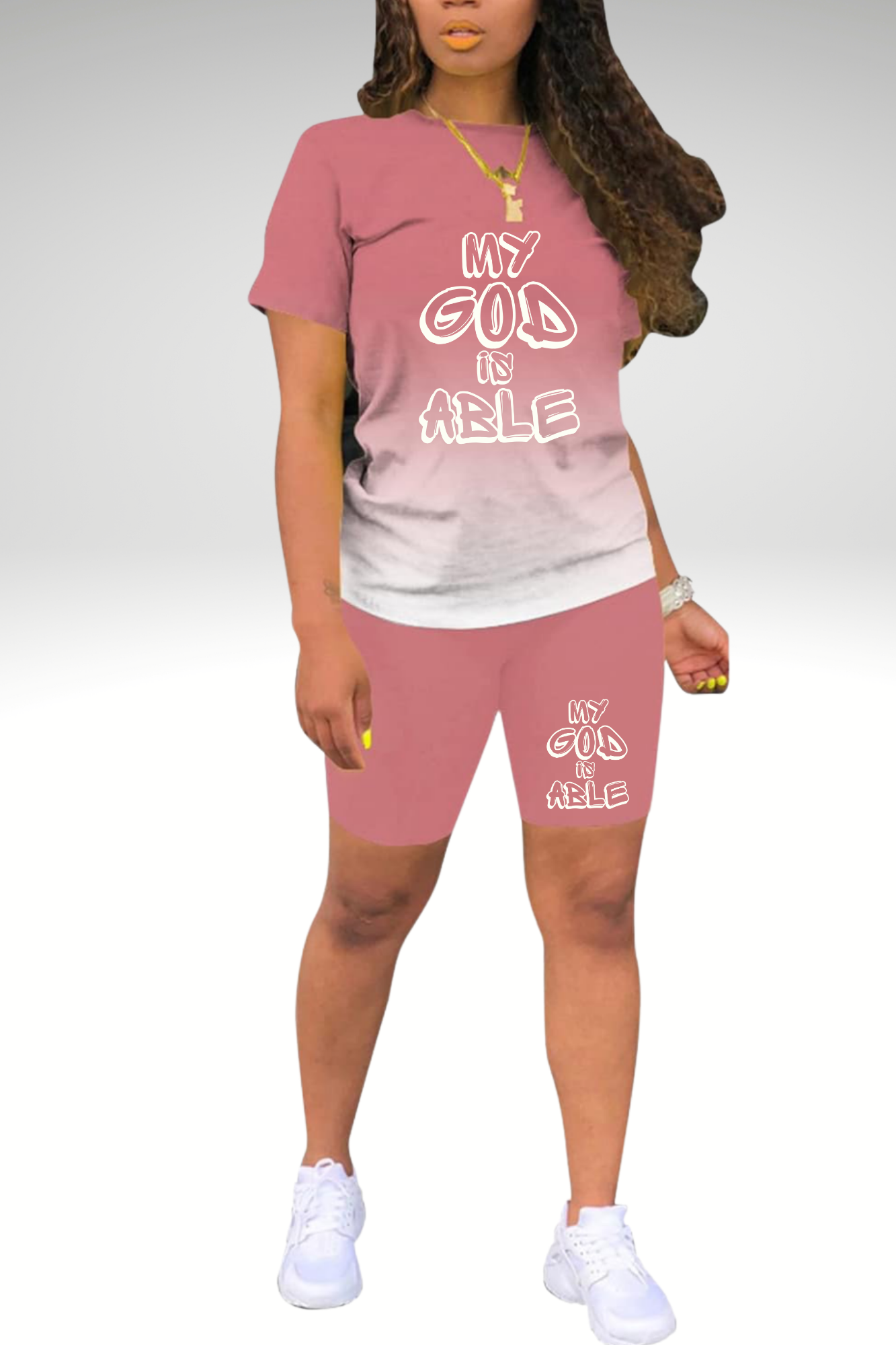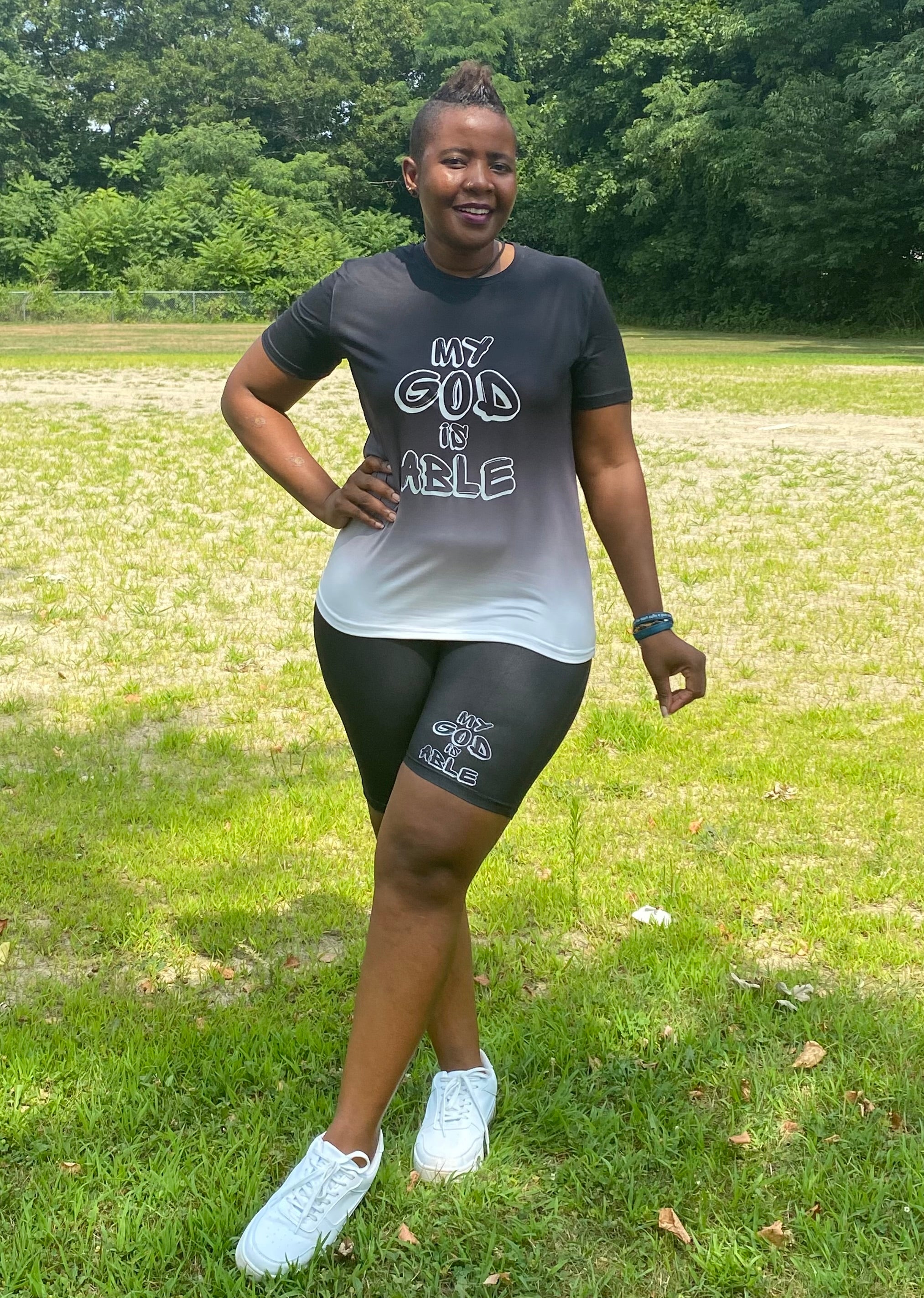 Step into the summer season with confidence and faith in the MY GOD IS ABLE Women's 2-Piece Christian T-Shirt and short Set. This Christian T-shirt set is designed for comfort, style, and a meaningful message that resonates with biblical teachings, perfect for any occasion from casual outings to relaxing at home.
