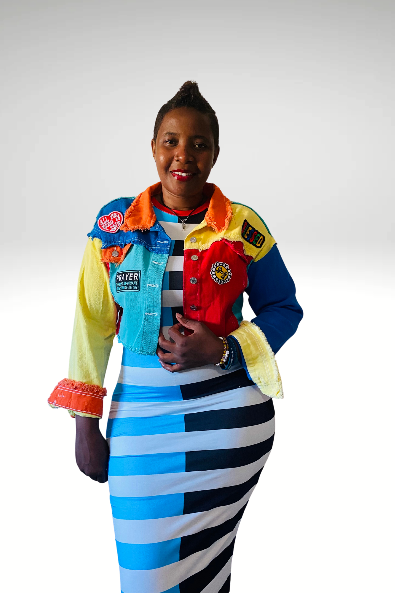 Introducing our Color Block Summer Christian Jacket, a vibrant and inspiring addition to your wardrobe. Designed to uplift and encourage, this jacket features a striking color block design and a series of powerful affirmations that serve as daily reminders of God's love and. This Christian jacket is more than just a fashion statement. It is a testament to your faith and a beacon of hope and positivity. Each affirmation is carefully chosen to reflect the core values of Christian belief, reminding you and those around you of the strength and comfort found in God's word.