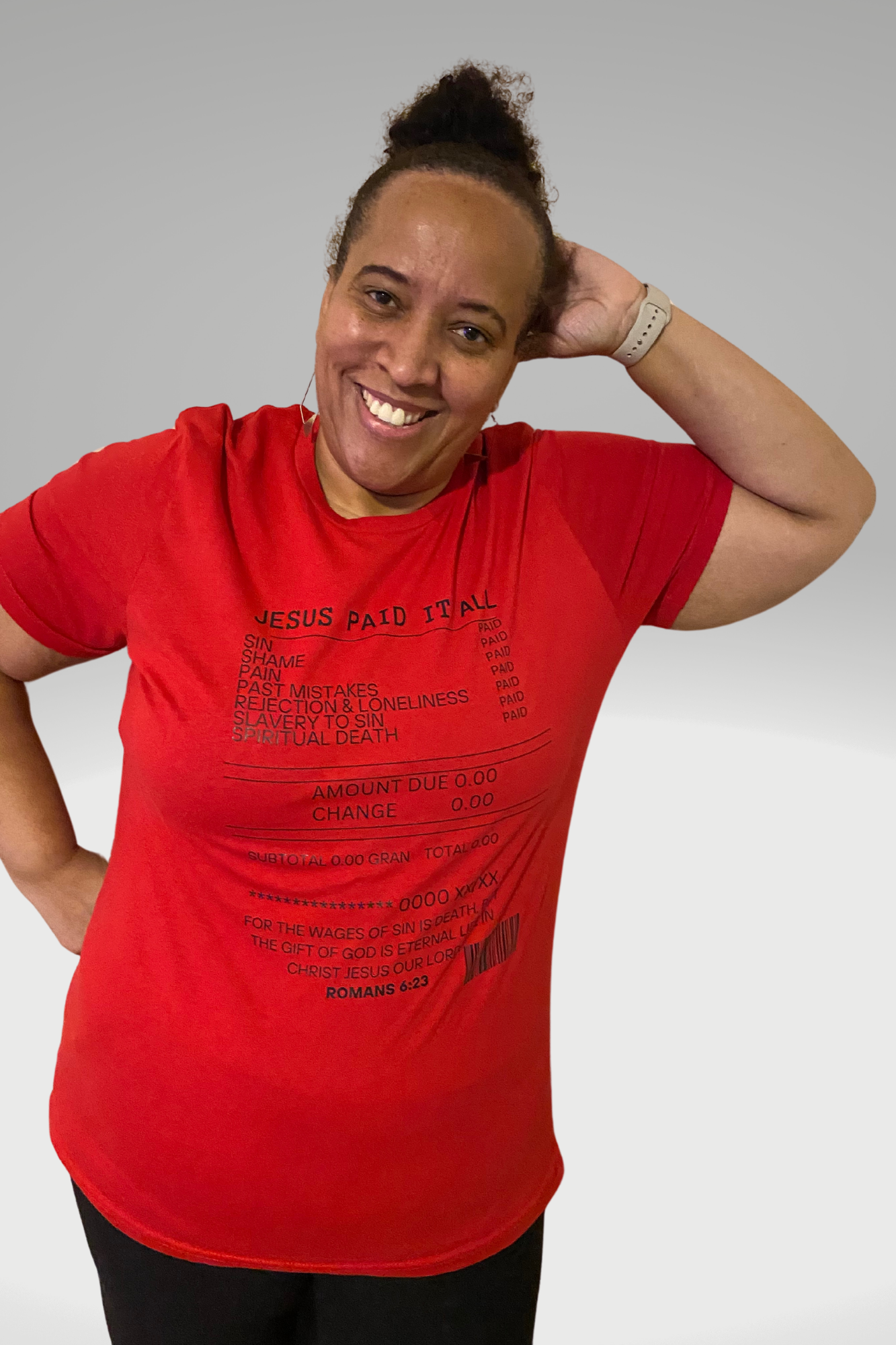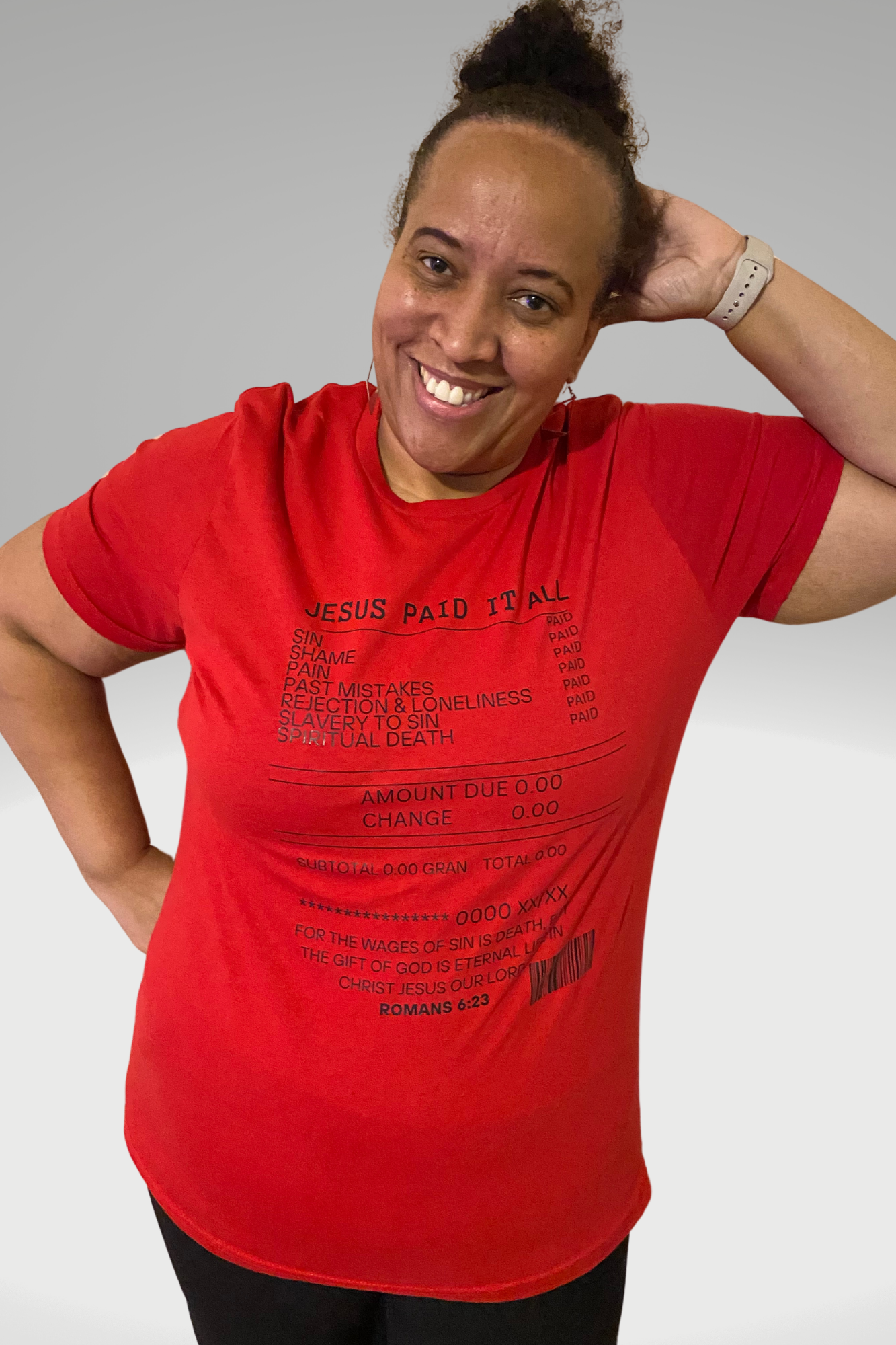 Introducing our "Jesus Paid It All" T-shirt - a testament to faith and fashion in one powerful garment. Crafted with comfort and style in mind, this T-shirt serves as a reminder of the ultimate sacrifice made for us. Inspired by the timeless words of Romans 5:8, which states, "But God demonstrates his own love for us in this: While we were still sinners, Christ died for us," this T-shirt encapsulates the profound truth of redemption and grace.